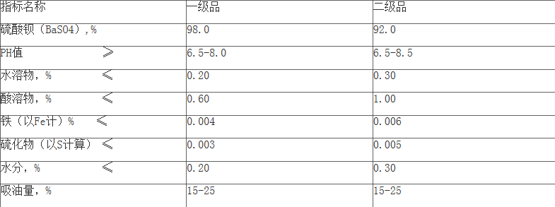 用途: 用作油漆、油墨、塑料、橡膠及蓄電池的原料或填充機,印像紙及銅板紙的表面涂布劑,紡織工業(yè)用的上漿劑。玻璃制品用作澄清劑,能起消泡和增加光澤的作用??勺鳛榉婪派渚€用的防護壁材。還用于陶瓷、搪瓷、香料和顏料等行業(yè)。也是制造其他鋇鹽的原料。 硫酸鋇因具有化學惰性強,穩(wěn)定性好,耐酸堿,硬度適中,高比重,高白度,能吸收有害射線等優(yōu)點,是一種具有保護環(huán)境功能的材料,因此廣泛用于各種涂料,油墨,醫(yī)藥合成化工,橡膠、造紙、陶瓷、化妝品等領域。精制硫酸鋇廣泛用于各種涂料(水性、油性及粉末涂料),油墨,造紙,工程塑料(家電外殼、建材塑料),電絕緣塑膠、橡膠制品等的填料。蓄電池的陰極膨脹棒,還可用于制造陶瓷、搪瓷的釉面材料等.。沉淀硫酸鋇BaSO4可作為白色涂料,亦可作填充劑用于橡膠與造紙,可增加其重量和光滑程度。沉淀硫酸鋇在橡膠、塑料、造紙、油漆、油墨、涂料等行業(yè)用作填料、增光劑、加重劑。